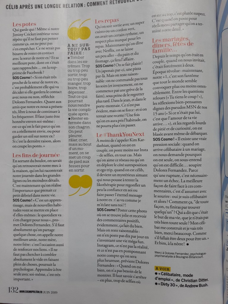 Entretien avec Mathilde Effosse, journaliste, auteure et dessinatrice, pour le numéro de Cosmopolitan de juin 2019, sur le thème « même en couple, je pense à moi ».