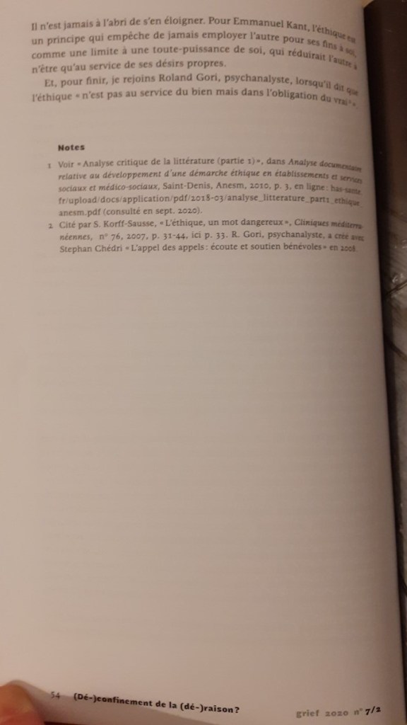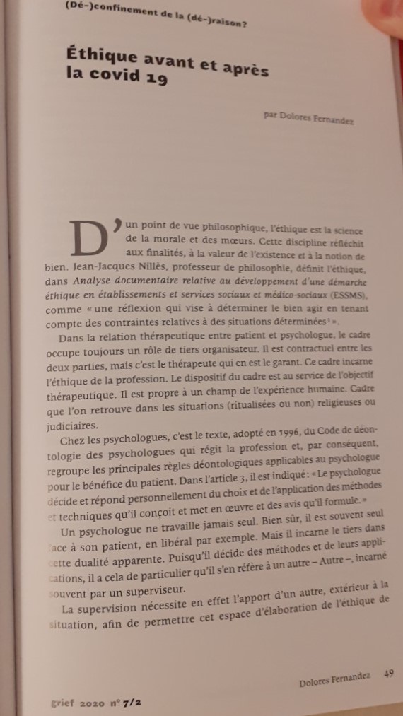 Article « Ethique avant et après la Covid-19 », rubrique (Dé-) confinement de la (dé-)raison ? dans Revue GRIEF, revue sur les mondes du droit, éditions Ecole des Hautes Etudes en Sciences Sociales
