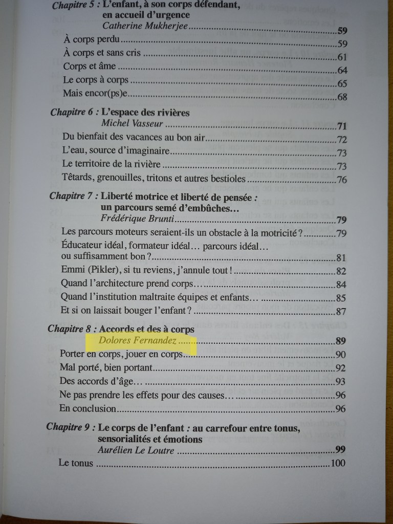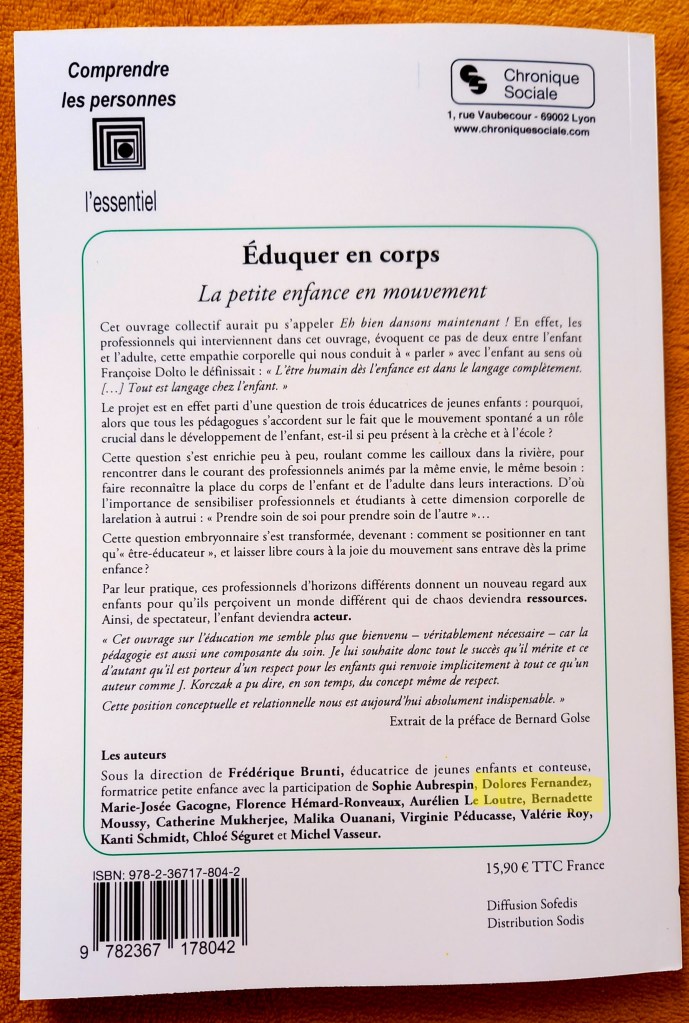 Ouvrage collectif, sur ce pas de deux, entre l’enfant et l’adulte. La petite enfance en mouvement. J’ai eu le plaisir de participer à cet ouvrage de 14 regards différents sur le corps de l’enfant.